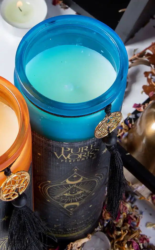 This tall glass candle is made purposefully to aid in manifestation.