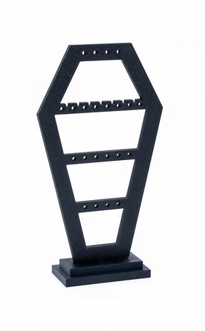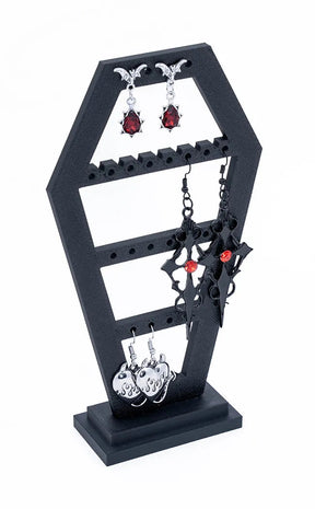 Lay your jewellery to rest on the Eternal Rest Coffin Earring Holder. This gorgeous gothic earring holder is a hollow coffin shape with 4 different racks to hang your earrings on with 22 holes free to sit your earrings in!