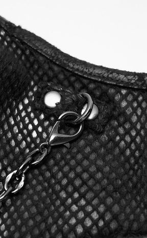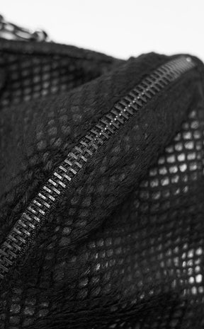 This mask is printed with faux snake scale pattern as if it were cut straight from a Leviathan's hide.  A removable gunmetal chain drapes over the front in a mocking metal smile.
