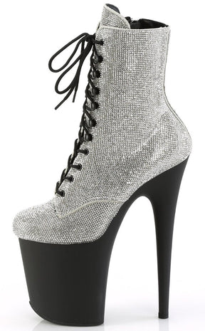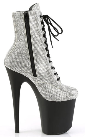 FLAMINGO-1020RS Silver Rhinestone Ankle Boots