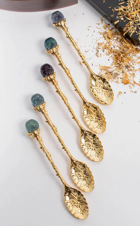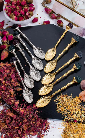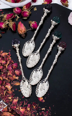 Crystal ritual spoons add a powerful, spellbinding touch to any sacred area or shrine, providing an exquisite energy of their own. Ritual spoons can be used to scoop herbs, as an aide to your morning manifestations and as a tool to cast spells or perform rituals. They make an enchanting addition to your kitchen or crafting toolbox.