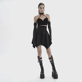 Harness your inner strength in the Fortress Mini Skirt! Made from a shimmering faux leather fabric, this mini sits high on the waist and flares out into a hanky hem for maximum witchy vibes. The waist is elastic to stretch for the perfect comfort fit and secures with a rear zip for easy on/off.