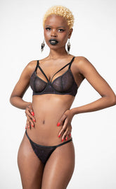 Map the stars with your gorgeous booty in the Garnetta Strappy Panty! Soft, lightly stretchy black mesh is printed with a custom celestial print to have ya feeling like a lunar goddess. With soft hip straps and a cotton-lined gusset, you'll be feelin' comfortable while lookin' stunning!