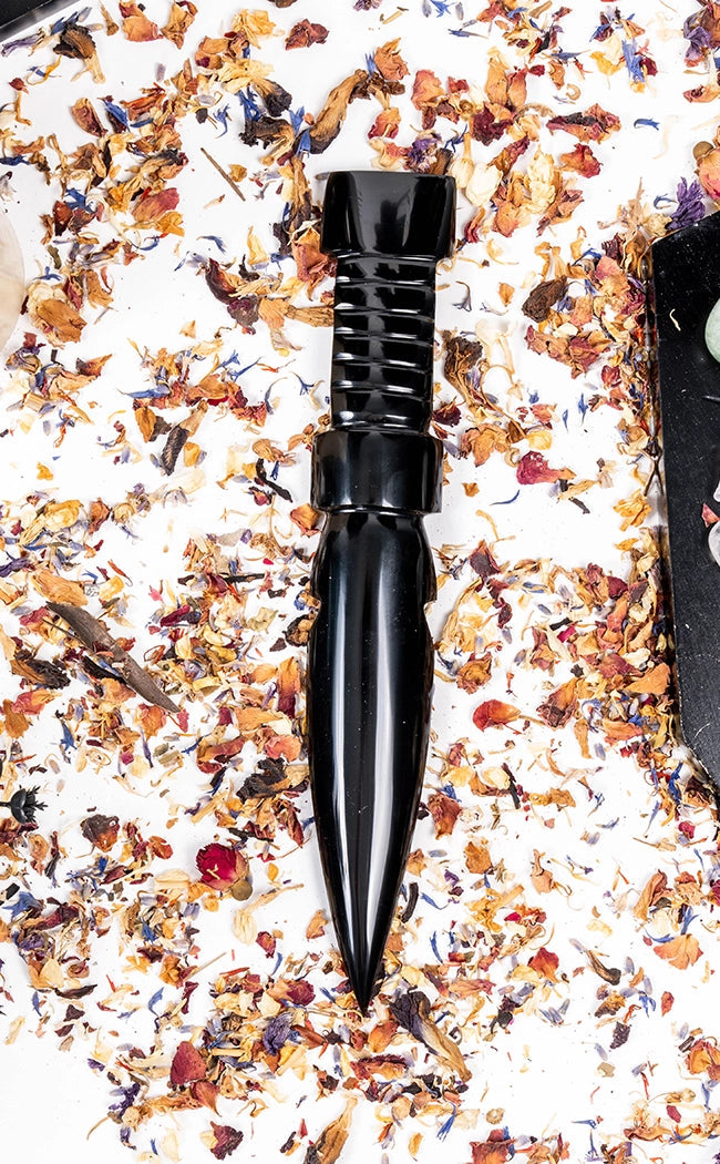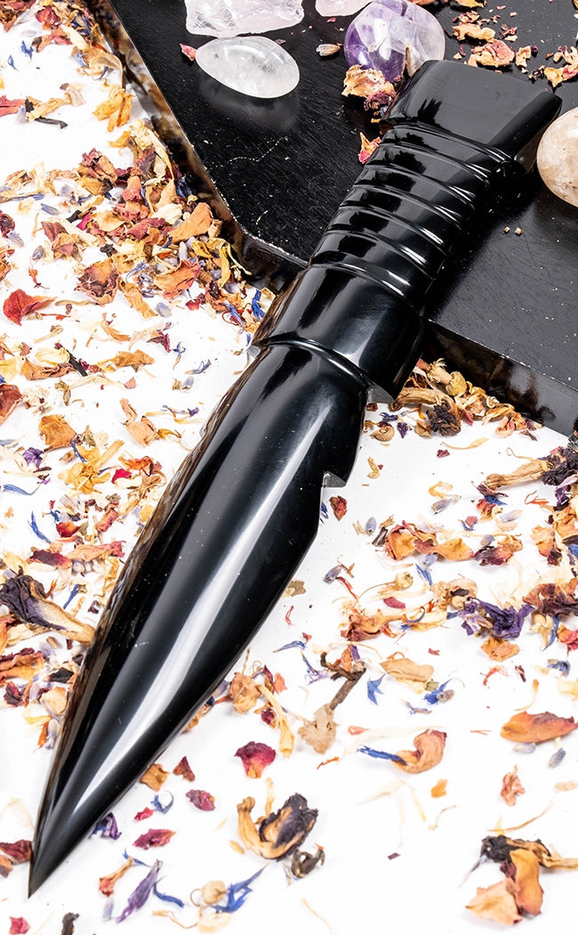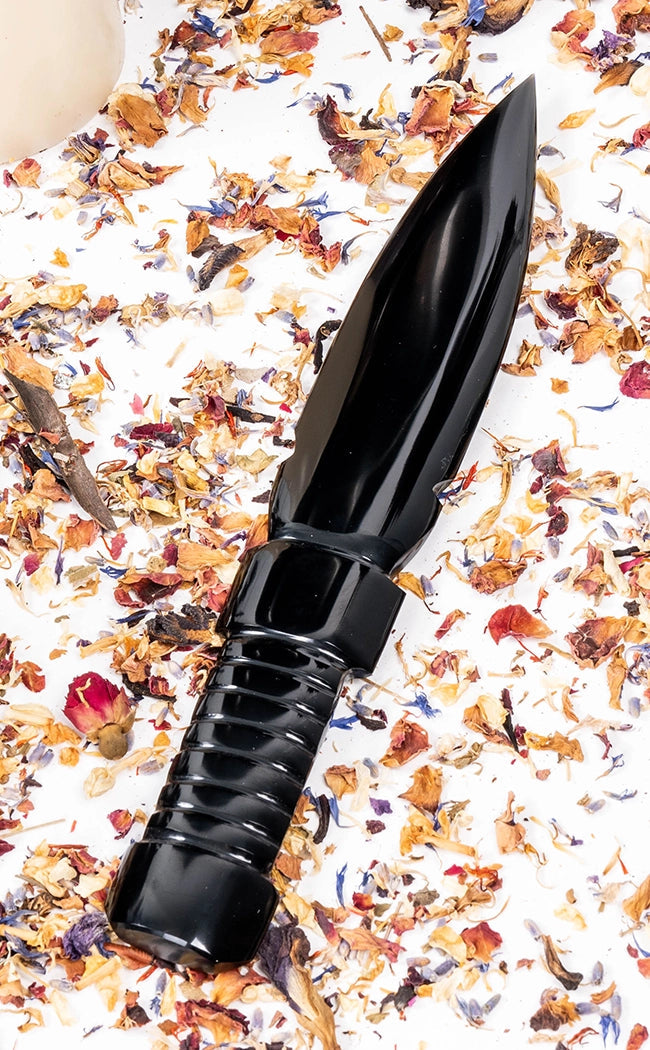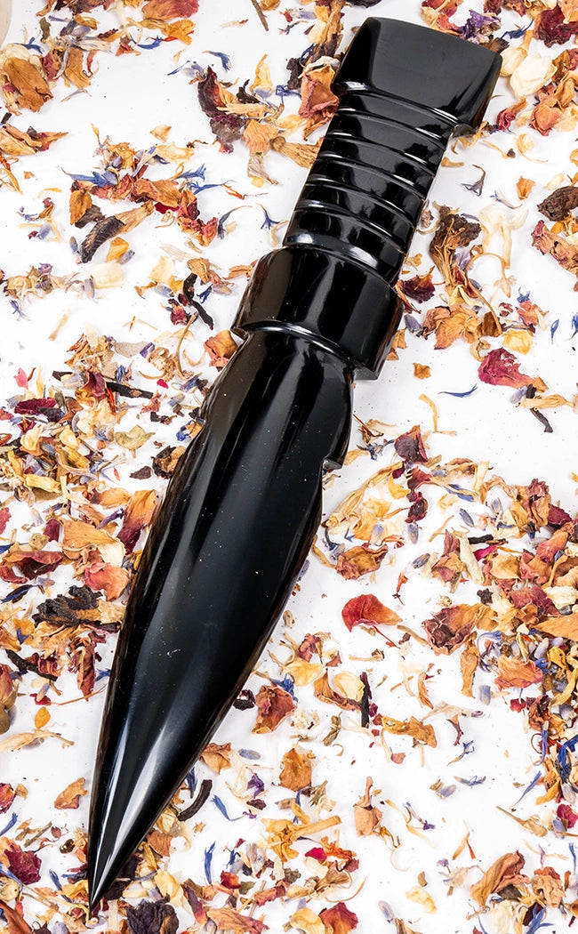 This athame is made entirely of genuine obsidian. Obsidian is an incredibly strong protective stone, as well as a revealer of truth. It can be used as a display item in addition to being used for ritual and magic use.