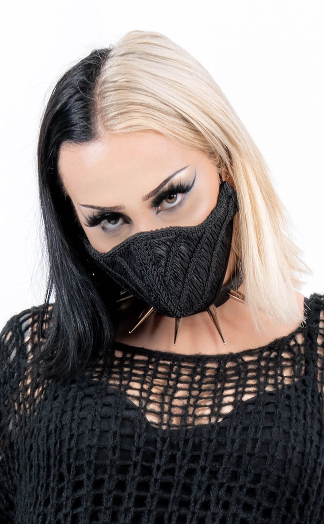 Look supernaturally good in the Ghostly Visions Face Mask! Textured fabric shines with an eerie lustre, decorated with ornate webbing to have you feeling like the fanciest ghoul in town.