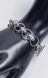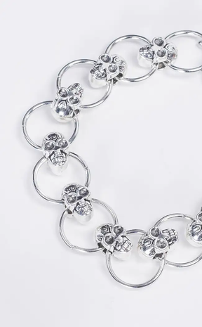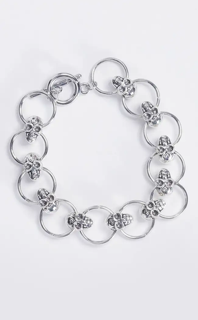 Introducing the Grave Consequences Bracelet: a bony bling of skulls and circles, perfect for adding an edgy twist to your wardrobe! Who says being trendy has to be so serious? Show everyone your fun side with this dead-on accessory!