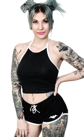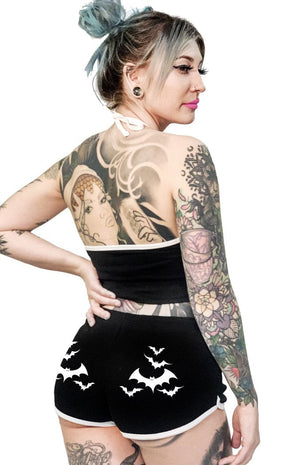 Sick of bright summer clothes? Too Fast has heard you loud and clear; say hello to the Halloween Bats Booty Shorts! These super cute short shorts showcase spooky white bats on the back. Perfect for lounging, working out or anything!
