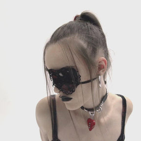 Ooze goth pirate vibes with the Calypso eyepatch! The patch is heart-shaped, featuring a skull charm and ribbon trimmed with lace. The reverse is made with super soft material, making it comfortable and easy to wear, securing with a soft lace tie.