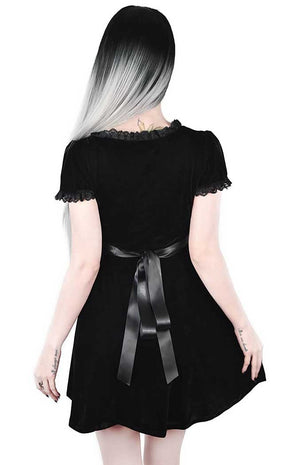 Dress like a demonic darling in the Heather Babydoll Dress! Her gorgeously soft velvet will caress your skin as it falls around you, forming a fitted waistline and adorable cap sleeves. A lace neckline, ribbon tie and buttons put the "doll" in "babydoll" to get you looking cute and alluring