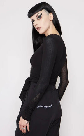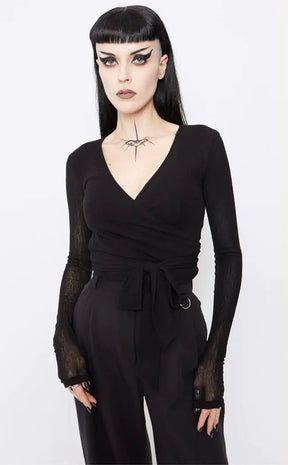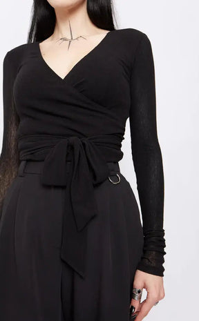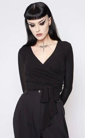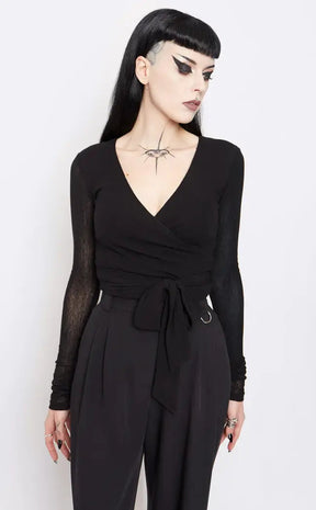 The Helena Wrap Top is crafted from a soft, stretchy knitted mesh fabric. Tastefully designed with a v-neck and self-lined body for a flattering fit. The purposely lengthened, semi-sheer sleeves can be styled at the wrist with a ruched effect, or worn to the knuckles for a more exaggerated look. Crafted with careful detail, this top is the perfect addition to any wardrobe. Make a statement the easy way - get the Helena today.