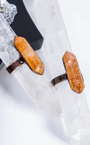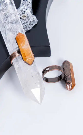 The Hiding in Sunlight Citrine Ring is made from a hand carved citrine crystal set in a hand made electroformed copper plated ring. These rings are fully adjustable.