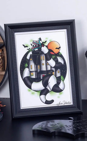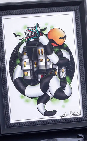 This beautiful artwork was done by Jessie Vorhees in her distinctive style. Beetlejuice Beetlejuice Beetlejuice! This print depicts a hungry sandworm about to devour anything in its way.