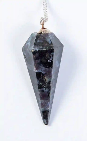 The pendulum is indigo gabbro on a gorgeous silver chain