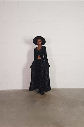 Dress with all of the drama and glamour you deserve! The Inferno Velvet duster is made with Killstar's iconic soft, stretch velvet, finished with a gorgeous burnout pattern that flows down your curves. The tie front detail and bell sleeves add seductive retro vibes while the rest of the duster flows in a dramatic silhouette.