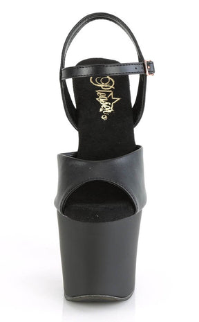 - Black PU leather with ankle strap.