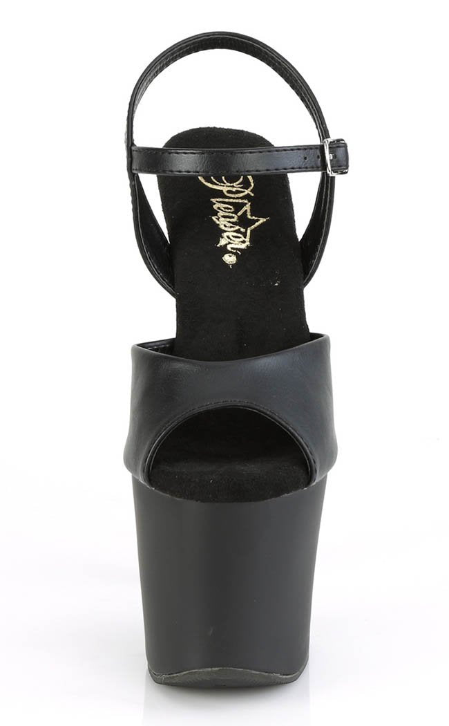 - Black PU leather with ankle strap.