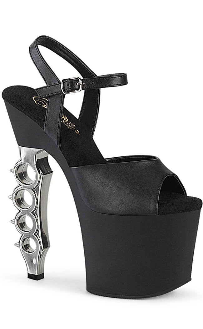 IRONGRIP-709 Black & Silver Brass Knuckle Platform Heels