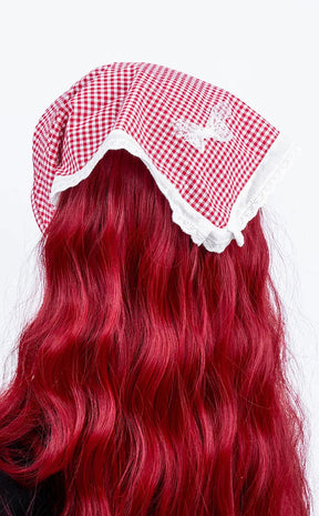 Serve picnic in human form with the darling Juniper Hair Scarves. These gorgeous hair pieces come in either red or black gingham and feature a gorgeous lace trim! Simply divine, a perfect accessory for cottagecore ghouls!