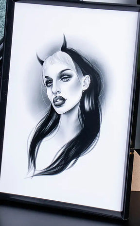 This art print showcases our gothic beauty Brydie looking devilish.