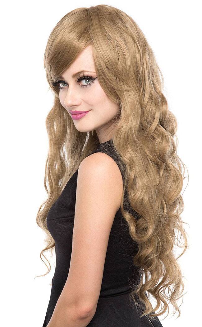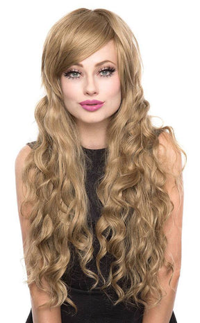 The most purrfect gothic lolita wig in a milk tea beige tone. Style has loose cascading curls and long, side-swept bangs which can be trimmed or styled to suit your face.