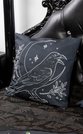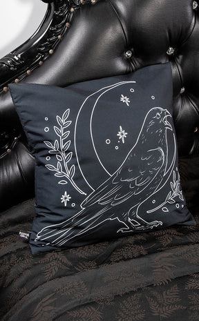 This beautiful cushion cover features Edgar sitting in front of a crescent moon, surrounded by leaves and ready to assist you in spellcraft and relaxation. Lay him on your couch or bed to bewitch your guests and add a touch of nature to your home.
