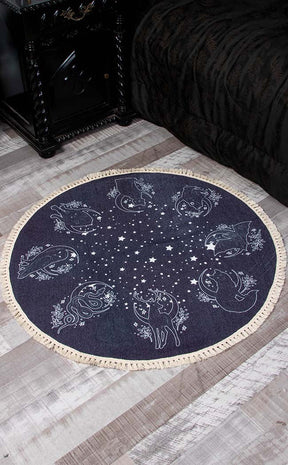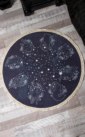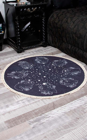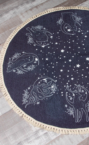 Turn your home into a magikal menagerie with the Les Familiars Fringed Rug! This witchy rug is made with a durable yet super-soft wave and features evocative artwork different magickal animals, all trimmed with a fancy fringe. With non-slip backing, this rug can be rolled out on any surface to decorate and delight animal lovers.
