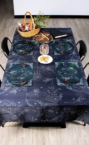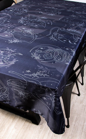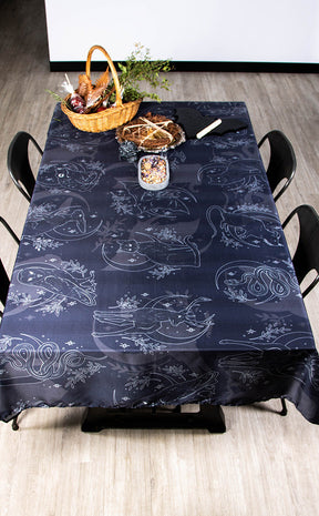 Make your home a magickal menagerie with the Les Familiers Large Tablecloth! Featuring beautiful artwork of witchy animals surrounded by nature, the monochrome colour scheme will look at home in any dining room.