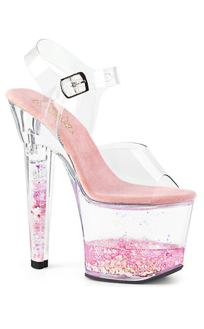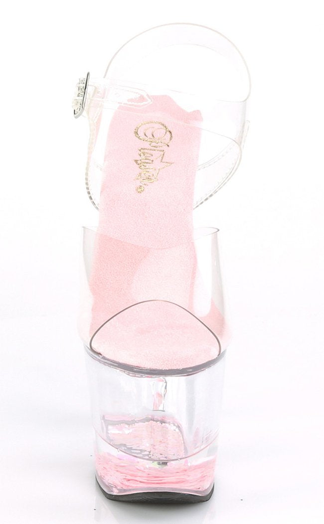 LOVESICK-708GH Clear & Pink Glitter Heels