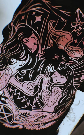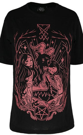 The perfect tee for the unapologetic witch. Tee features the lucifer sigil & baphomet accompanied by two tattooed women. Relaxed fit & oversize shape.
