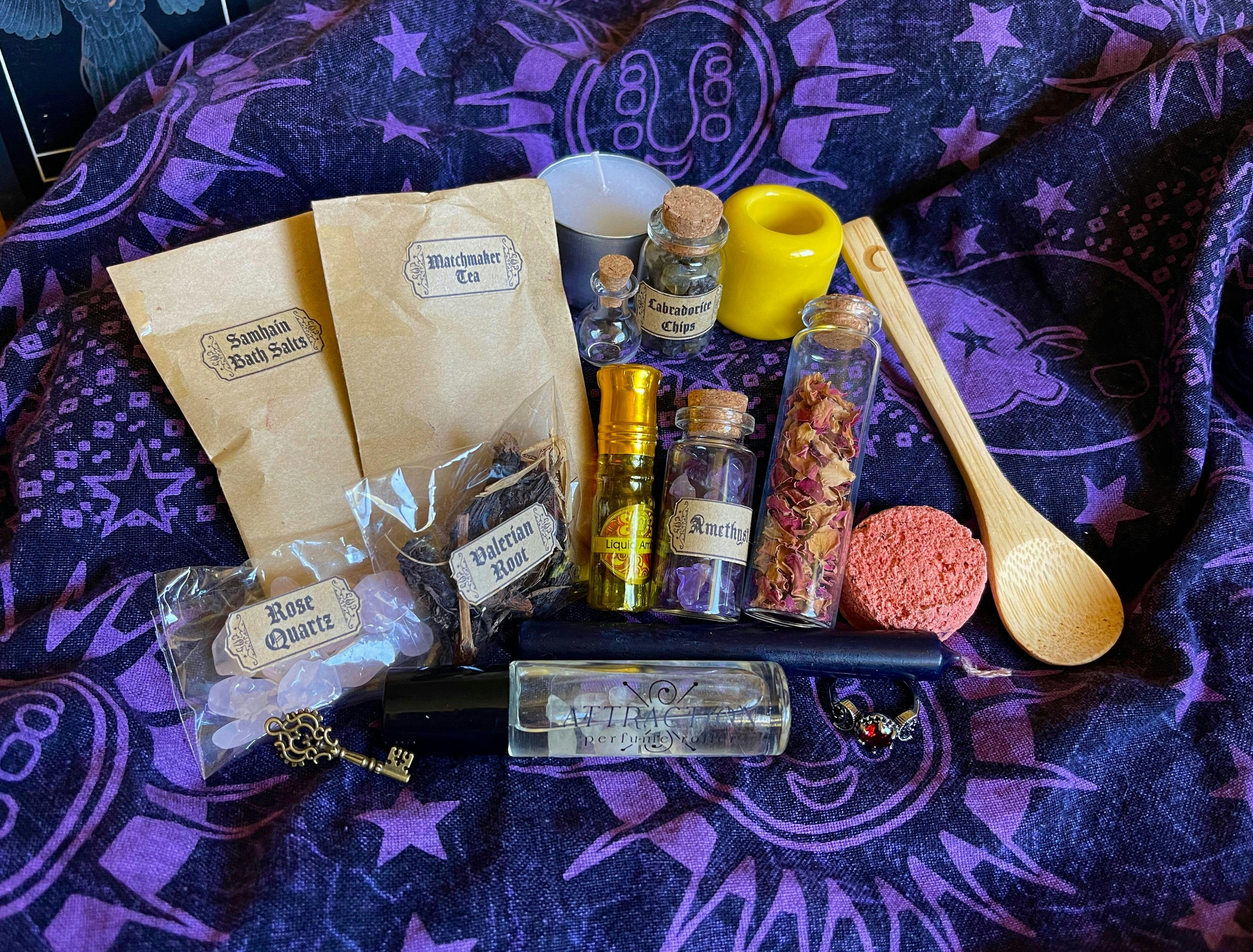 Inside, you might find natural crystals, spell candles, grimoire pages, herbs, charms, jewellery, empty spell bottles, anointing oil, resins, divination tools, and other magickal curios - each selected with purpose to elevate your rituals and sacred space.