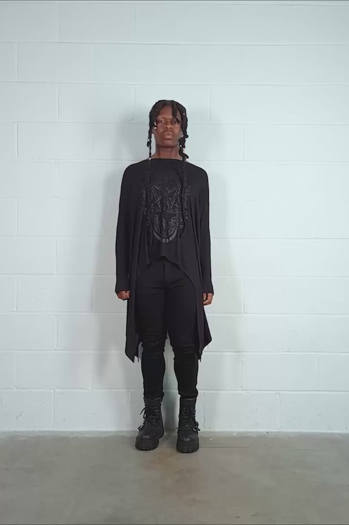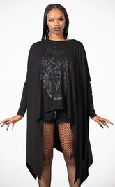 Eclipse the crowds with your powerful aura in the Lunar Oversized Top. This magickal top is super soft and stretchy, draping gorgeously around your bod. Printed with a wicked black-on-black motif, this baby features long sleeves, a hanky hem, a longline silhouette and a relaxed fit to have ya feelin' cosy yet stylin'