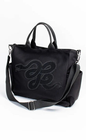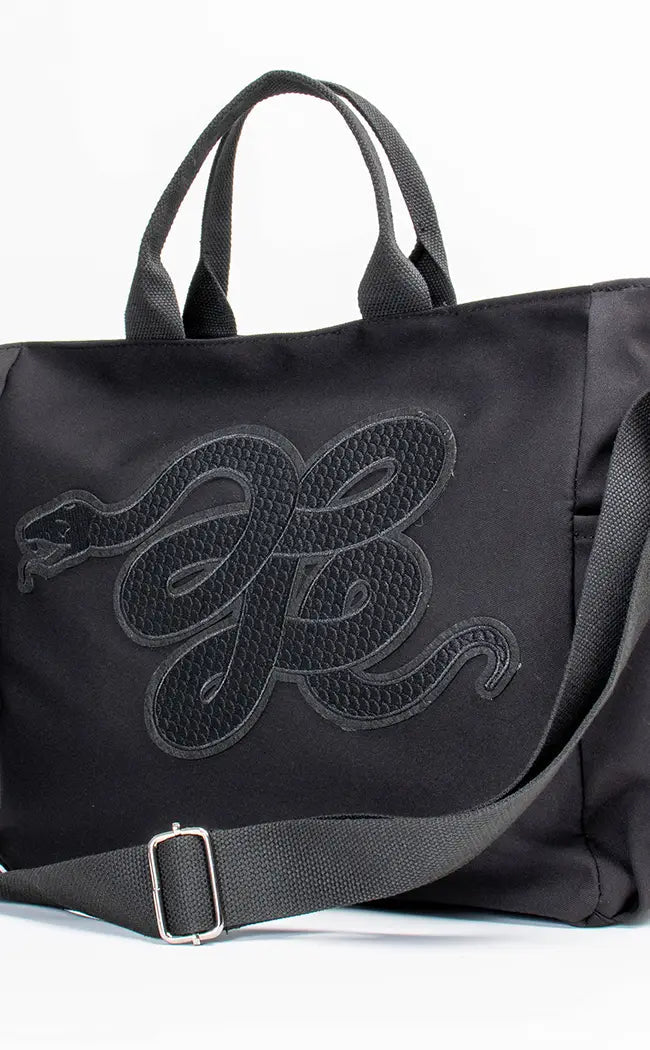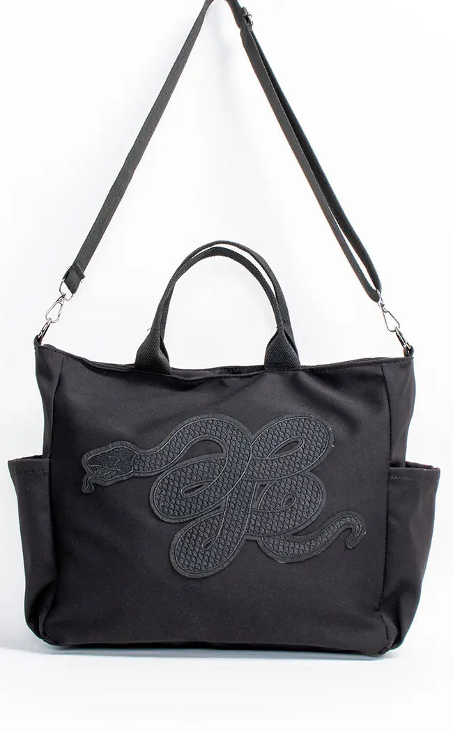 Featuring a black-on-black snake design and the iconic Medusa, it has multiple compartments to stay organized and carry everything you need.