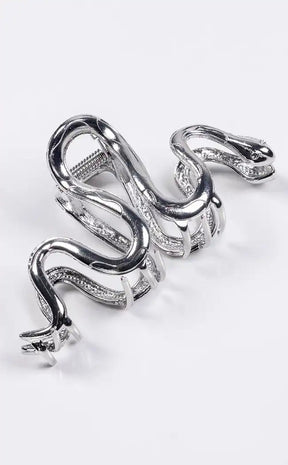 This gorgeous gothic claw clip features a silver snake on either side of the claw, creating the perfectly seamless snake feature when clipped into your hair. With strong sturdy teeth to hold your gothic upstyle in place, this metal snake's grasp is strong enough to hold long and thick hair all day and night.