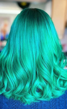 Mermaid hair colour looks as gorgeously teal as a mermaid should. A striking light turquoise, this colour is perfect for those that want a bright aquatic shade of green for their mermaid locks.