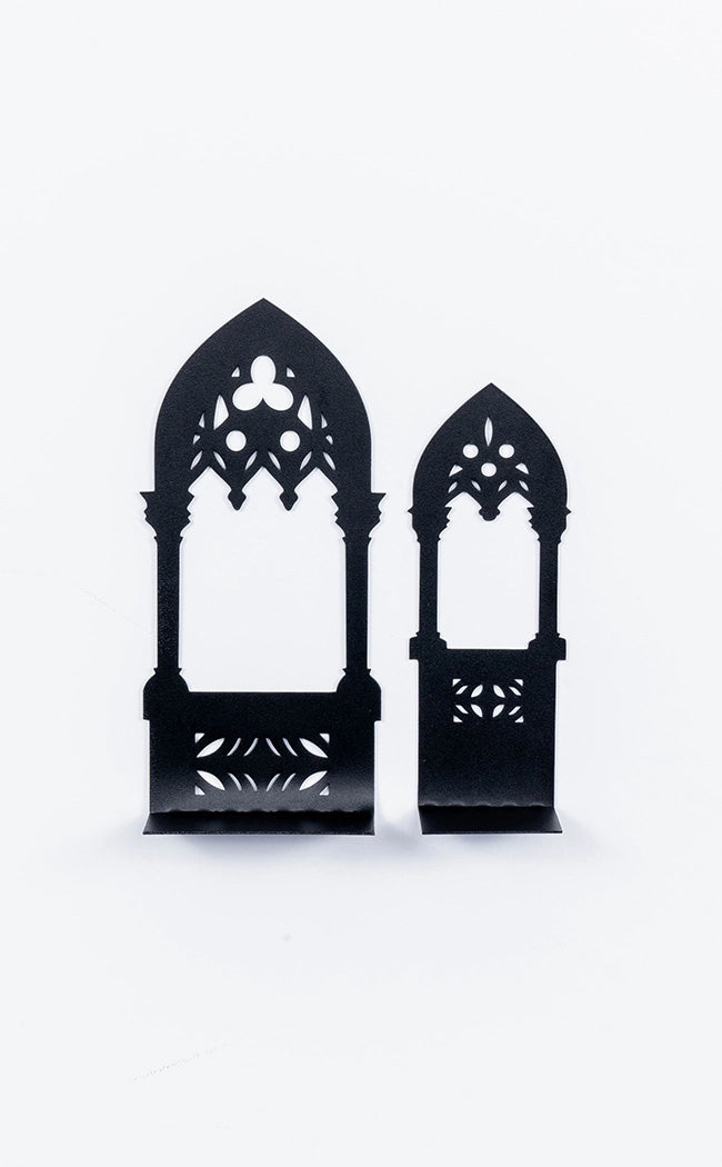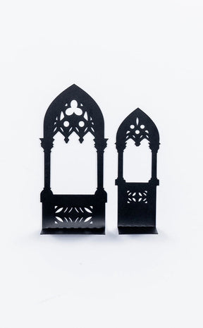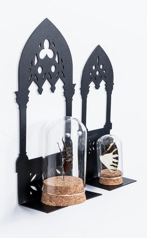 This Cathedral Shelf will become the dramatic centrepiece of any room, featuring a statement window-like border and a matte black finish.
