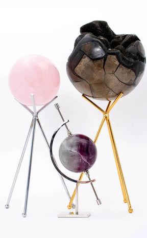 Show off your stunning crystals with these elegant crystal sphere stands. These stands are the perfect display piece for your favourite crystals! This lightweight yet sturdy metal stand is the perfect display piece for crystal balls, spheres, and eggs.