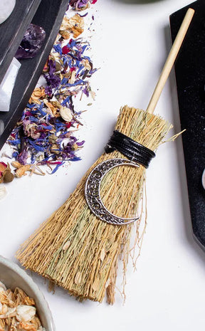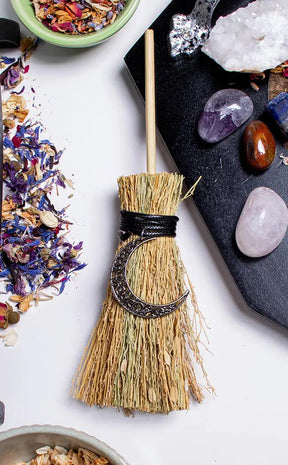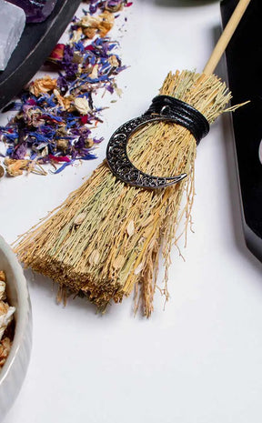 This mini besom is small enough to be placed on an altar or carried while travelling. It has a cute crescent moon charm attached. To maximize the effectiveness of your besom, it is recommended that you bless and anoint it. You can use one of our spell oils such as protection or luck.