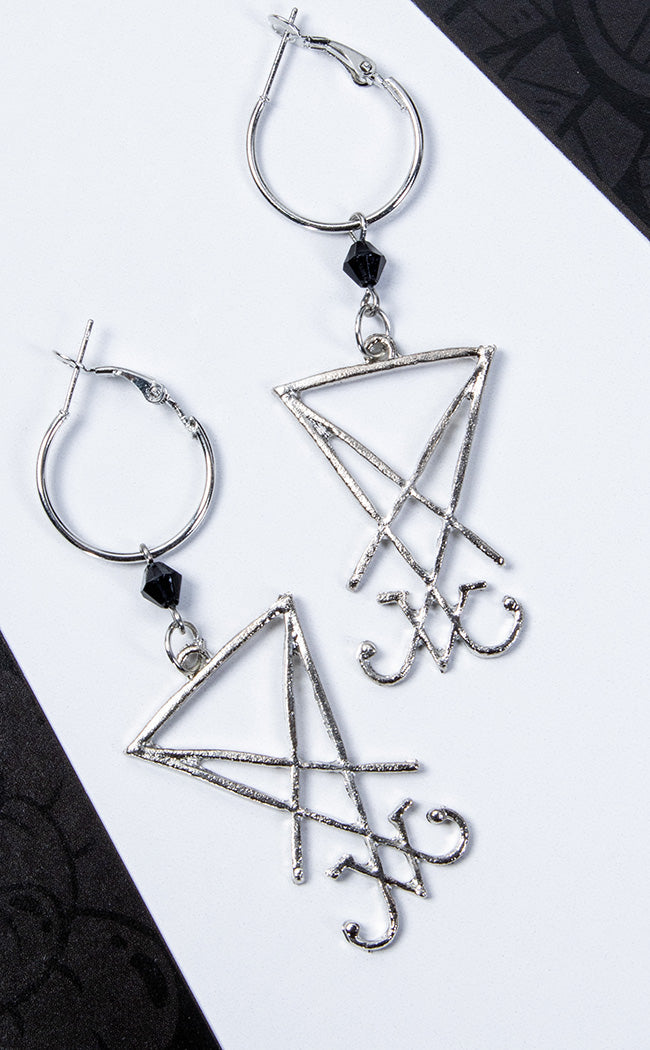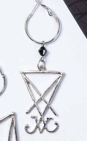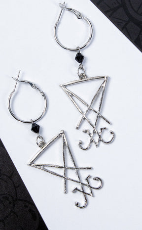 Behold the Sigil of Lucifer Morningstar, immortalised for eternity in silver glory! His oversized mark hangs from loop fastenings to bathe the wearer in unholy light and frame the face.