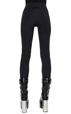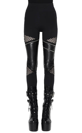 Channel your inner modern-goddess; the 'Neo-Noir' leggings exudes power and control with its slick-fit and modern metal-warrior vibe. Panel construction of jersey and faux leather - with stitch and zip detailing, accent fishnet panels to enhance the shape and elastic waistband. A must-have statement piece that takes your outfit to the next level.