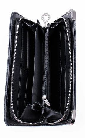 - Wallet compartments: 8 card slots, an inner zip compartment for keeping change secure, and 3 separate compartments for keeping items organized