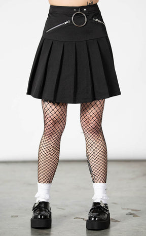 Watch their jaws hit the floor when you step out in the No Lip Pleated Skirt. This cheeky mini was conjured from soft stretch fabric, featuring a statement O ring and zips as well as large pleats.