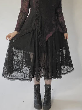 Get yourself looking fancy with a metal edge! The lace overskirt bits below the knees with a beautifully intricate pattern. A modesty underskirt sits in black below, the waistband studded and covered in D rings so you can position the removable chains however you please.