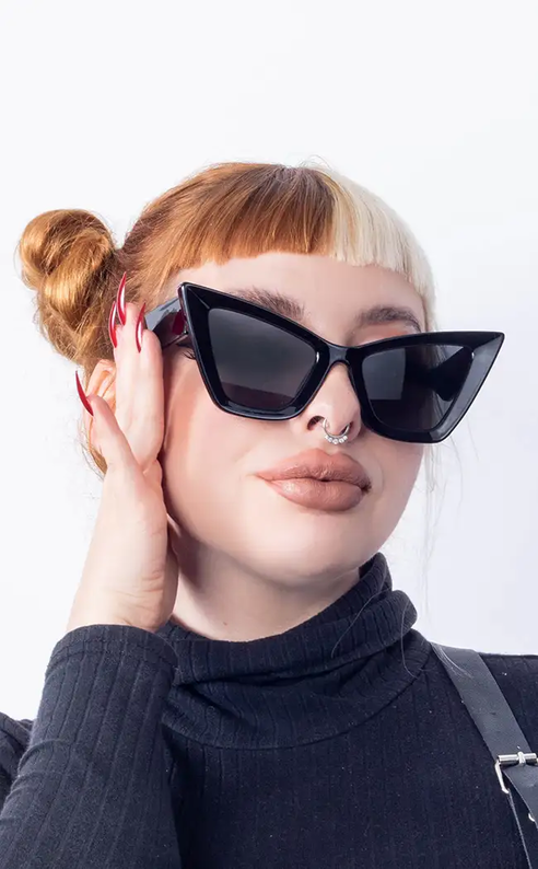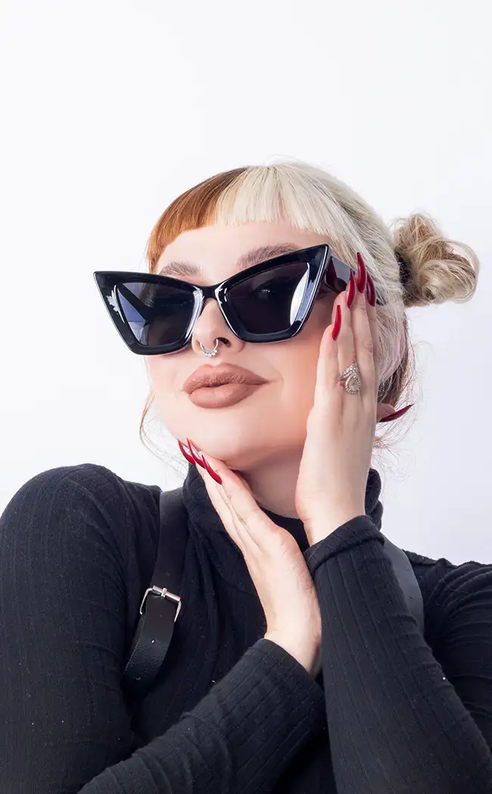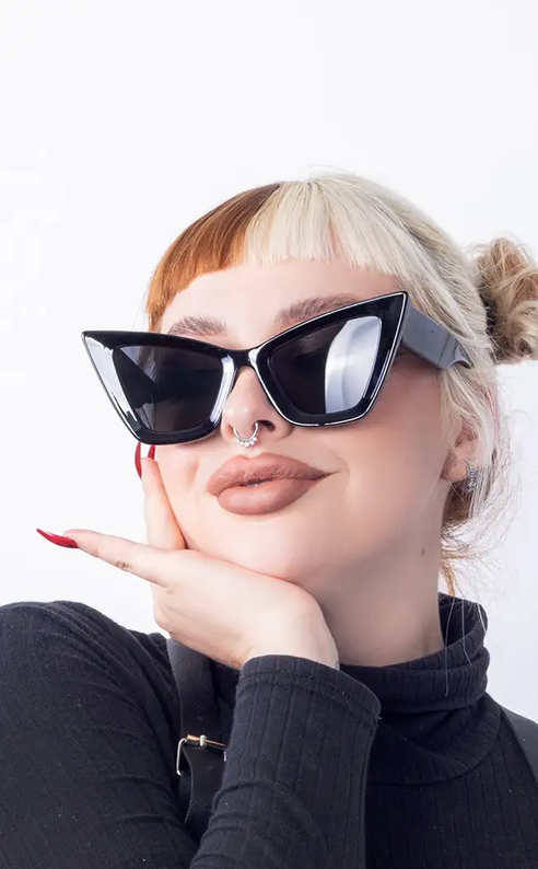 These striking, oversized sunglasses feature a chic black frame and lenses that will draw all eyes to you. Natural sun protection and UV400 lenses will keep your eyes safe from the sun. Add instant glamour to any look as well as keep your eyes protected!