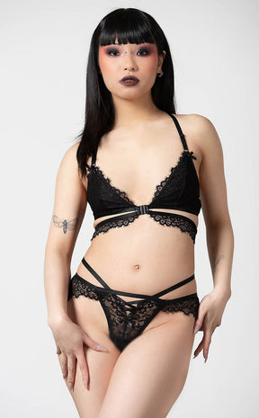 Haunt their dreams in the luxe Phantom Lace Bra! Conjured from soft, stretch lace, this beautiful bra features statement straps that drape across your sides, delicate lace trims, criss-cross back straps and adjustable shoulder straps.