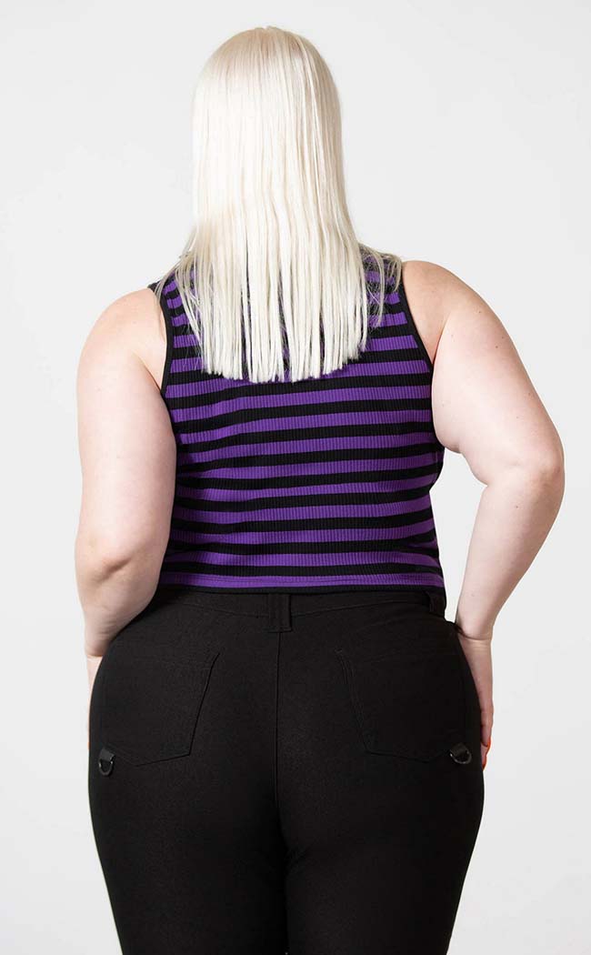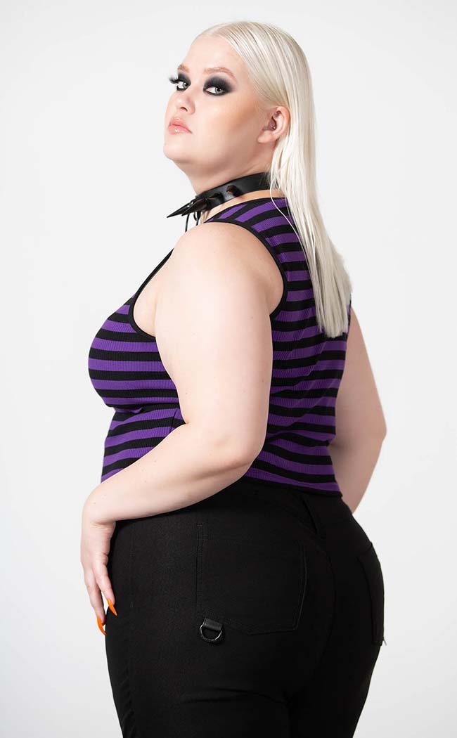 Break up the basics with the Possessed Rib Vest! This cropped cutie is made from a soft, stretch ribbed fabric, featuring contrasting stripes and a chunky pentagram zip on the round neckline.