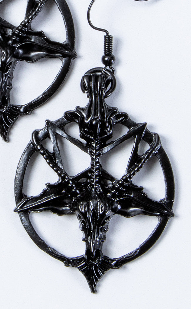 Show off yer dark side with the Pray The Lord Baphomet Earrings! These babies feature dangling pentacles with Baphomet charms. So cute it's unholy!