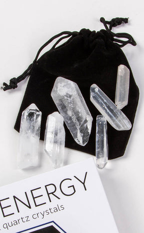 This crystal pack comes with 6 clear quartz generator crystals of varying sizes and a drawstring pouch for safe travel.We aim to ship all orders within 24 hours unless they contain a preorder or custom item.