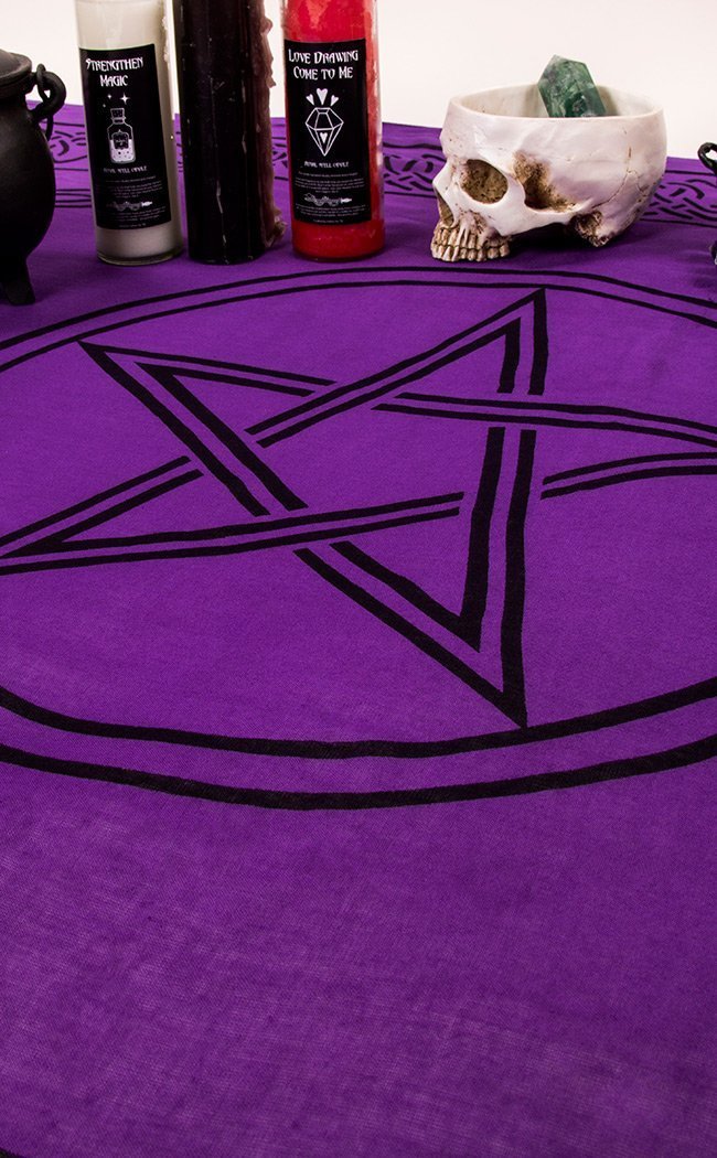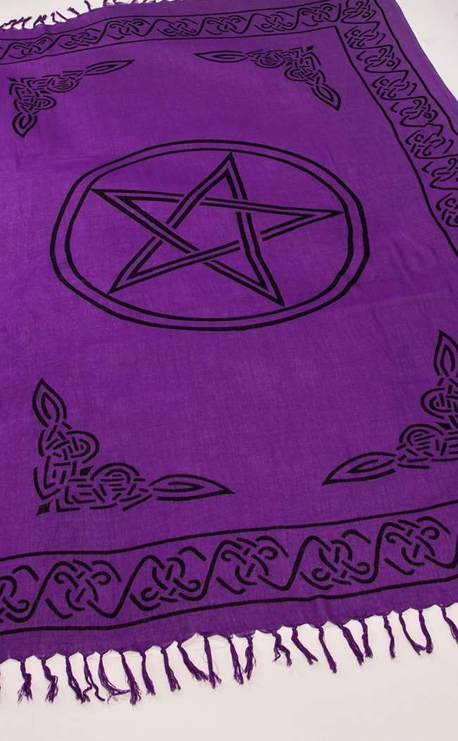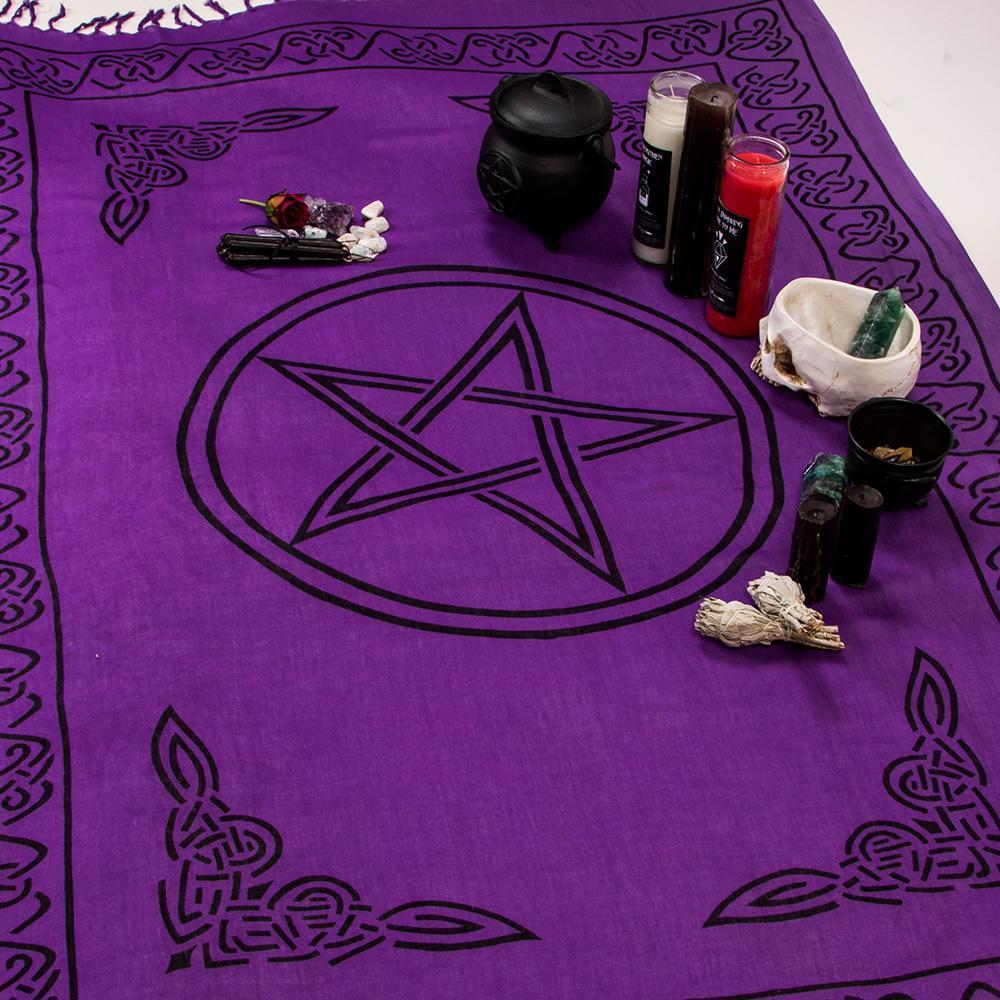 Gorgeous soft cotton throw featuring vivid purple and a pentacle print. Great fpor altars, tables, beds, wall hanging or where ever you need to up the witchy vibe!