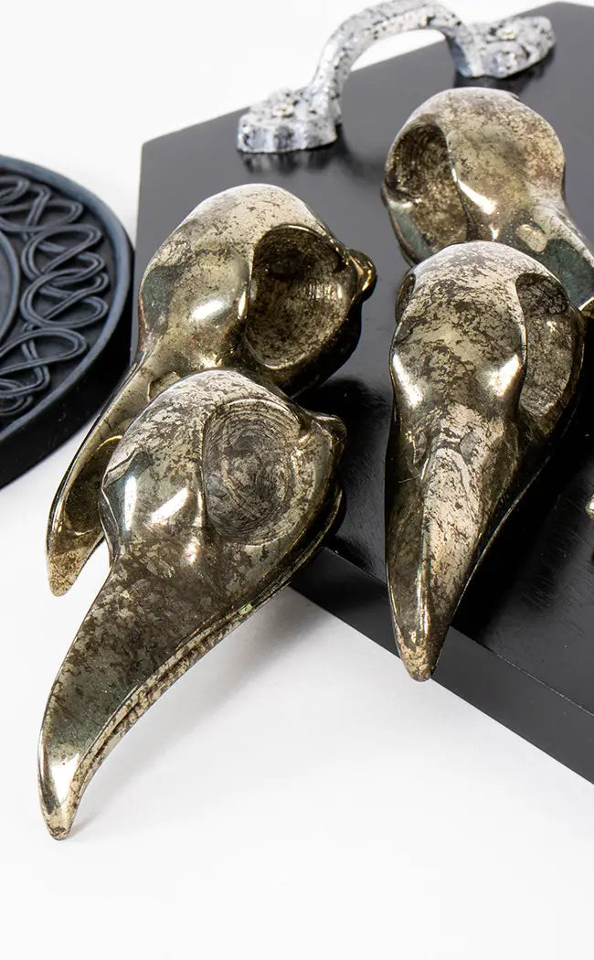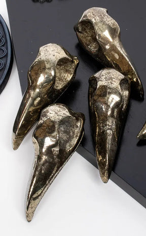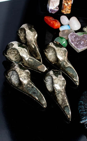 Add to your crystal collection with one of our macabre, glittering crystal raven skulls. These beautifully polished crystals feature intricately carved details that make for a unique manifestation tool. These skulls are made from Pyrite.