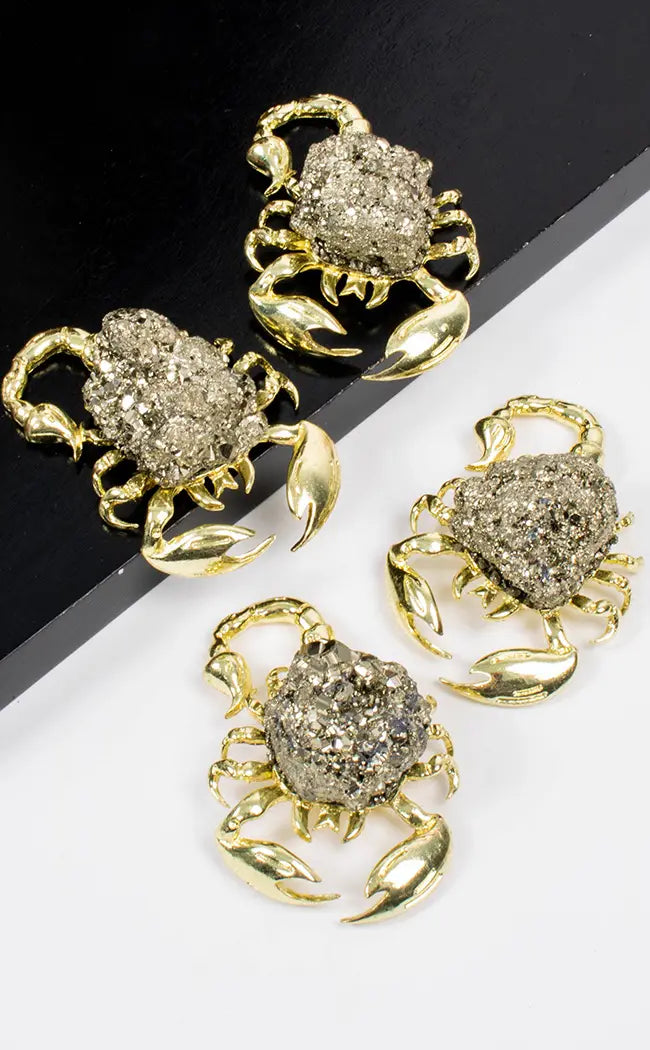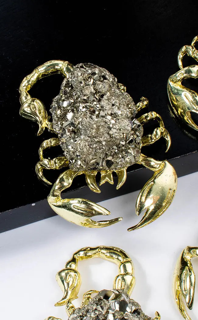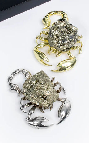 Add to your crystal collection with one of our macabre, glittering crystal scorpions. These beautiful crystals feature luminous pyrite clusters attached to a gold scorpion's body, and will make a stunning and unique addition to any home or altar. These scorpions are made from Pyrite.